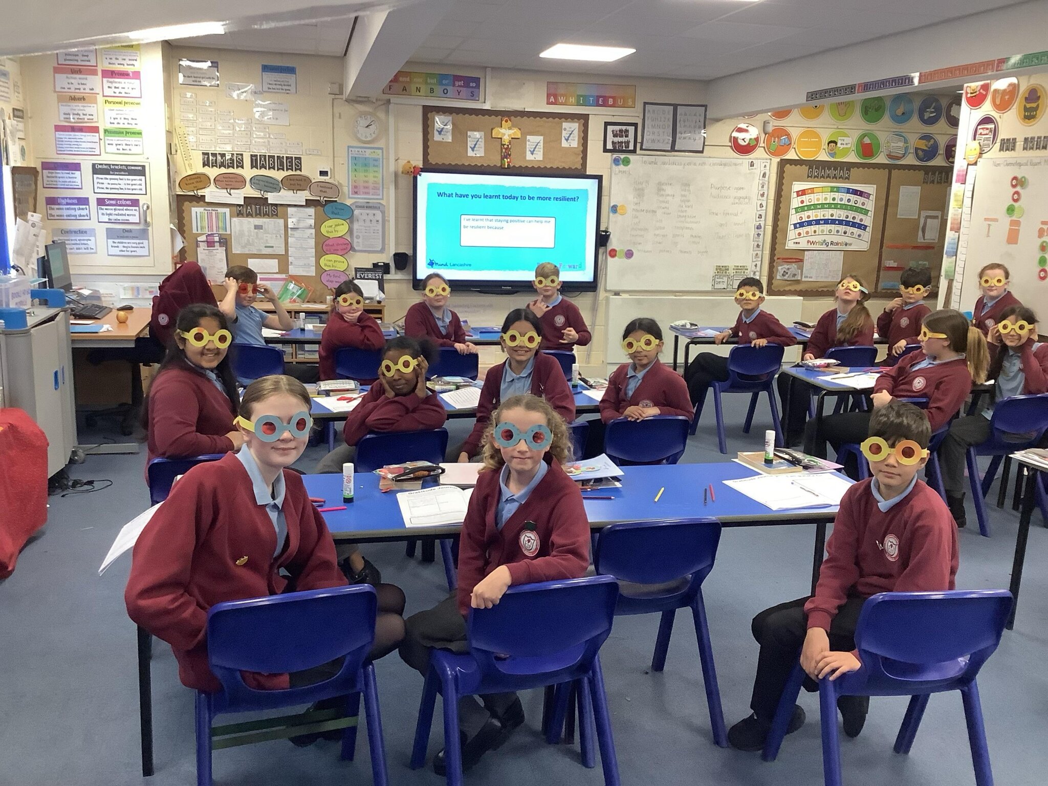 Putting our positivity glasses on with our Bounce Forward PSHE lesson with Lyndsey.