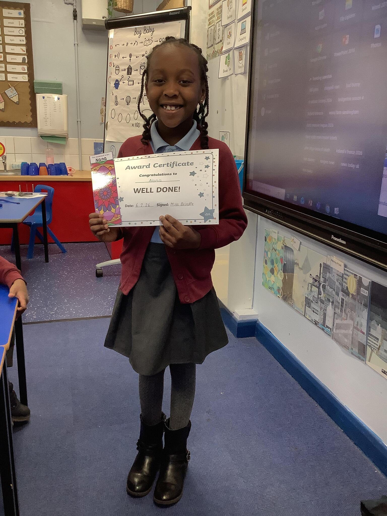 Year 2 reader of the week - This week our reader of the week is Nana! Nana is a super reader who has excellent prosody and comprehension skills. She has been recognised for her fluency and effort in our reading sessions.
