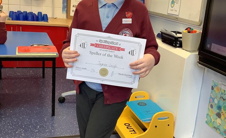 Jaymee-Leigh is this weeks speller of the week because she tries so hard and puts 100% into her home learning to ensure she achieves full marks.