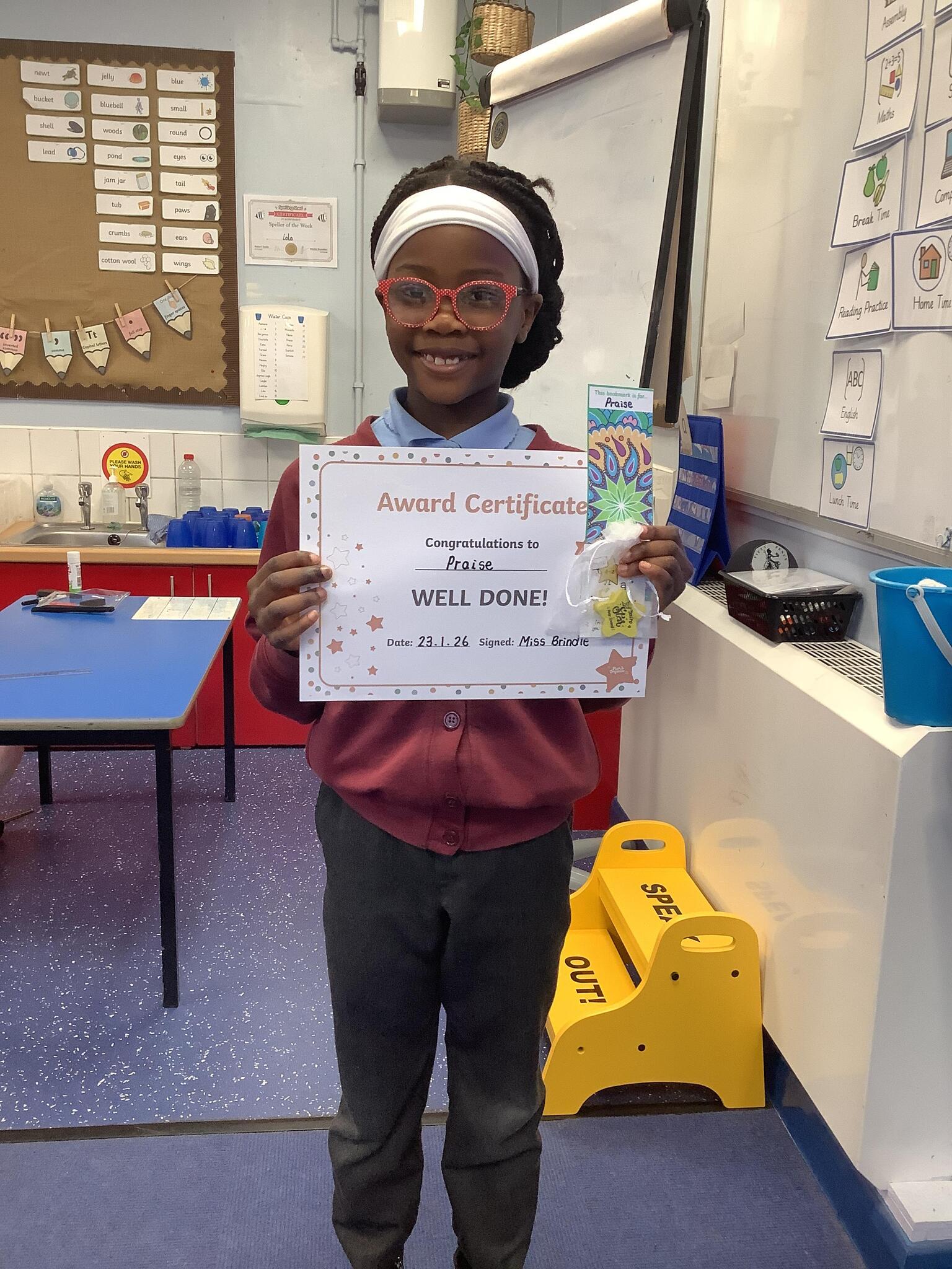 Year 2 reader of the week! Praise has read every week consistently since September, she shows great enjoyment in her reading and has made huge progress.