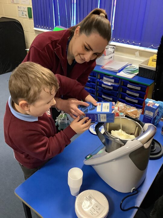 Year 1 won the overall attendance race for this half term! Therefore, we have had a special treat this morning of pancakes and homemade strawberry milkshake made in our Thermomix!