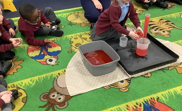 In Maths we have been learning about Capacity (full, nearly full, how many cupfuls) and understanding numbers 6,7 and 8.