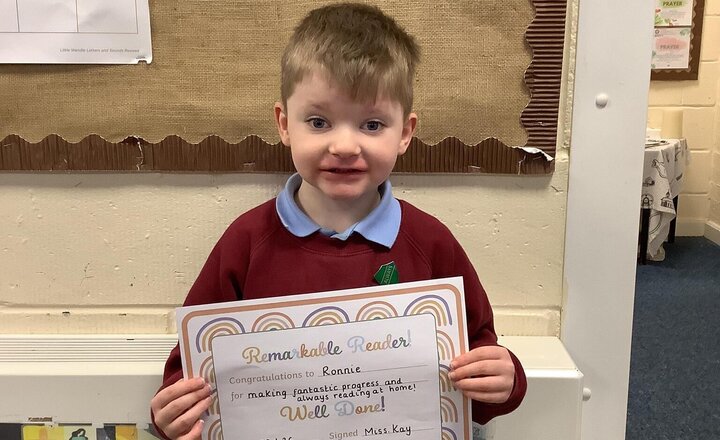 Our reader of the week! This week our reader of the week has been selected for making fantastic progress and always reading at home. Well done Ronnie! You are a superstar!